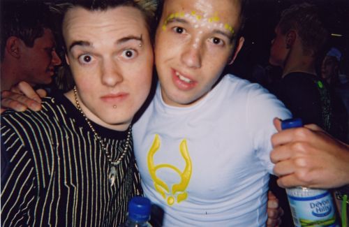 This is one of Lee's many - so thanks - but any way here's me (Longsdale T-Shirt) to my right/your left is me baby bro Chris (the 1st time he went clubbing eva! Mwhahahahah!), the legends on the on the extreme's are: left Andy R (the dumb but fun blonde) and the crazy mo fo on the right in the red is HRH The Duke of Glouster.